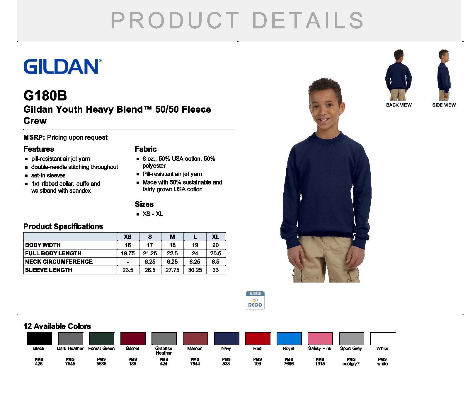 G180B Gildan Youth Heavy Blend™ 50/50 Fleece Crew